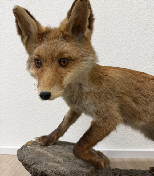 Vintage Tierpräparat Rotfuchs auf Fels-Sockel (ca. Mitte 20. Jahrhundert)