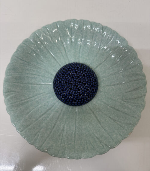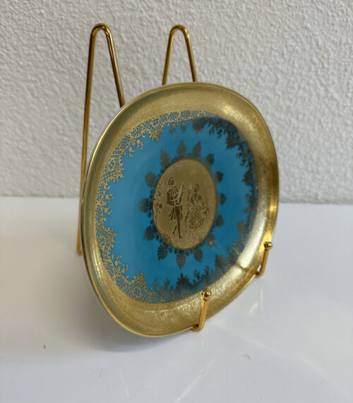 DW Fine Porcelain Zierteller oval in Türkis mit Golddekor
