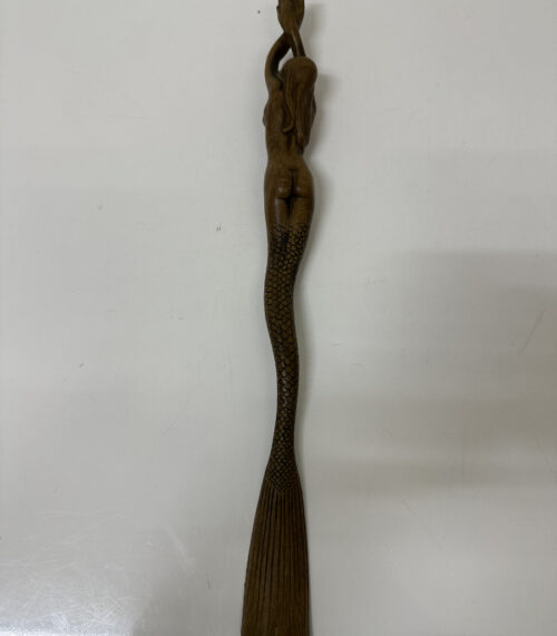 Vintage Schuhlöffel Meerjungfrau aus Holz, geschnitzt, Folk Art, ca. 1960er