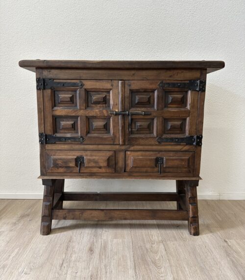 Antikes spanisches Sideboard aus Massivholz mit Eisenbeschlägen