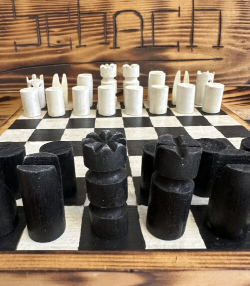 Vintage handgemachtes Schachspiel aus Massivholz