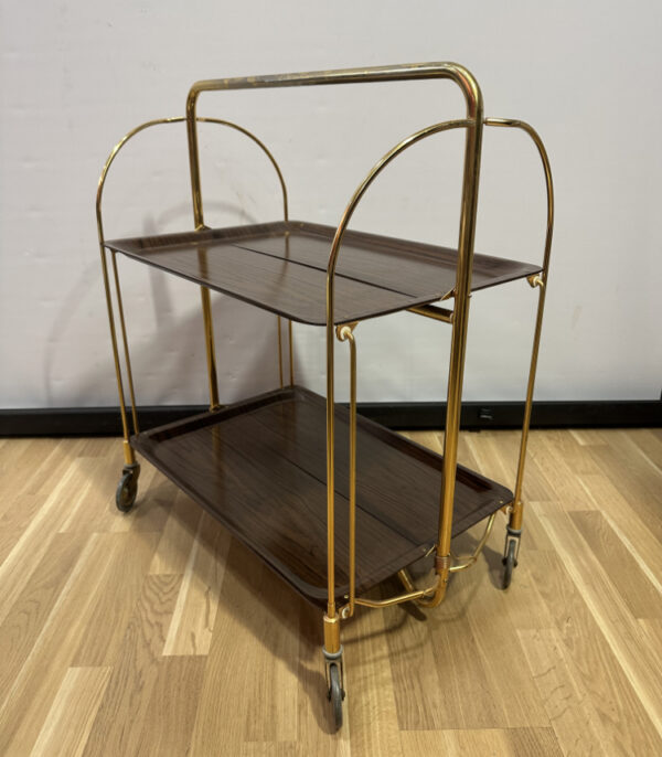 Vintage Servierwagen aus Messing und Holzoptik, ca. 1970er Jahre