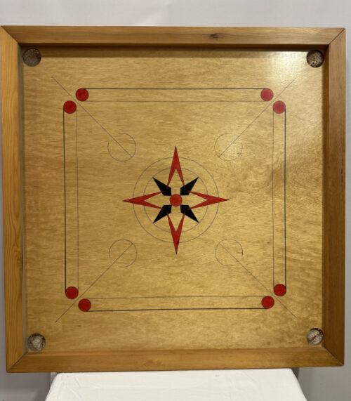 Carrom Brett aus Holz mit handgefertigtem Spielfelddesign