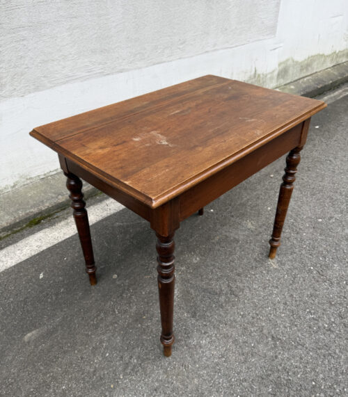 Antiker kleiner Tisch aus Eiche mit Schublade und Drechselbeinen