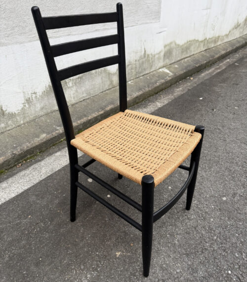 Italienischer Mid Century Stuhl mit geflochtener Sitzfläche, um 1950–1970