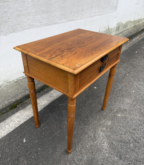 Antiker kleiner Tisch aus Eiche mit Schublade und Drechselbeinen