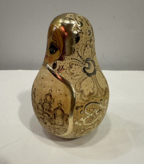 Rassel-Matrjoschka mit Gravur «Kiew», handbemalt und goldverziert