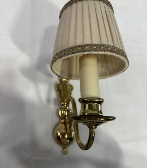 Vintage Wandleuchte aus Messing mit Stoffschirm