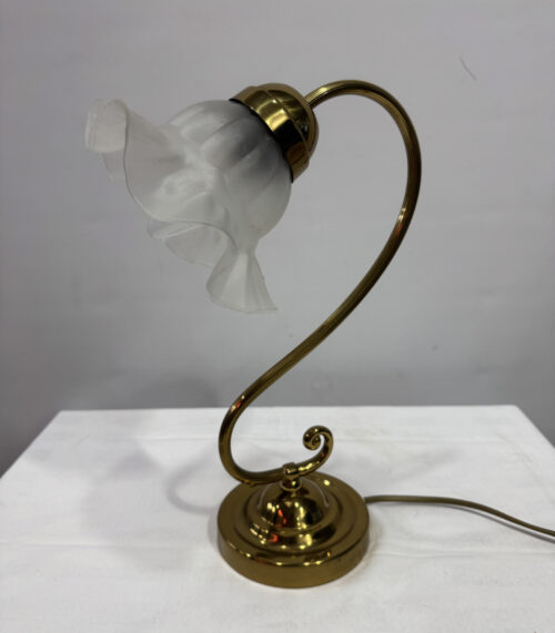 Vintage Tischleuchte im Jugendstil mit floraler Glasblüte und Messinggestell