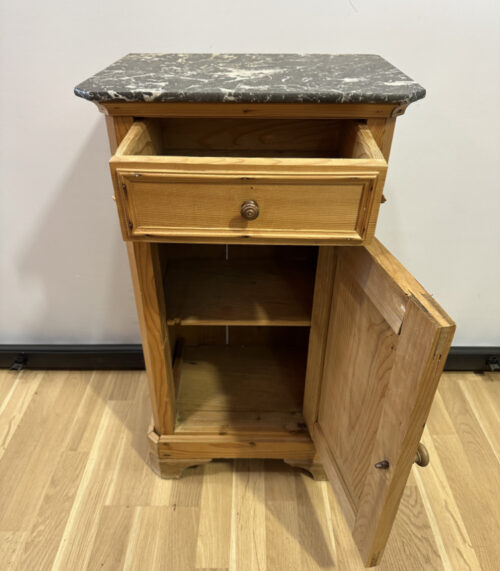 Antiker Gründerzeit Nachttisch aus Kiefernholz mit Marmorplatte um 1900
