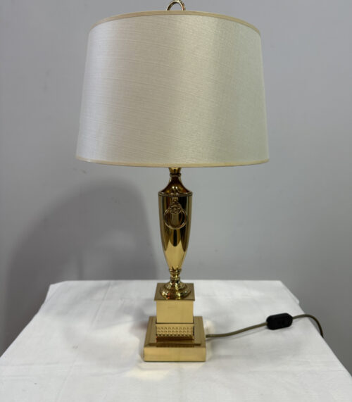 Vintage vergoldete Tischlampe mit Stoffschirm, Beleuchtungs Schau AG Zürich