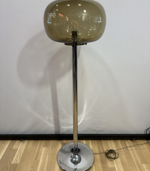 Vintage Stehleuchte aus den 70er Jahren mit Rauchglas Schirm und Chromgestell