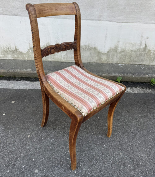 Original Biedermeier Stuhl aus Nussbaum mit rosa-beigem Bezug ca. 1820–1840