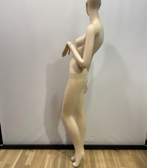 Weibliche Schaufensterpuppe aus Kunststoff mit Glasstandfuss