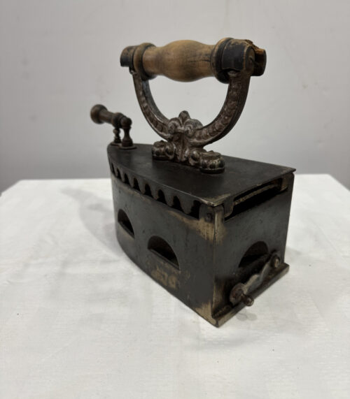 Antikes Kohlebügeleisen aus Gusseisen mit Holzgriff