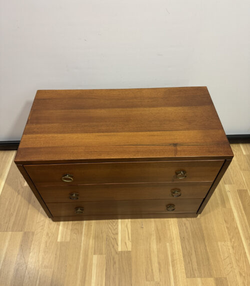 Kommode aus Nussbaum mit drei Schubladen und Rollen