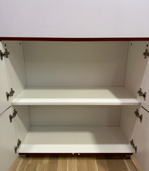 Roter Schrank mit vier Türen und Einlegeböden