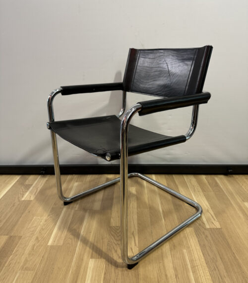 Vintage Freischwinger Stuhl im Bauhaus Stil mit Lederbespannung