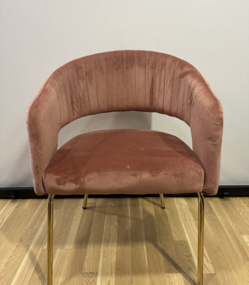 2er Set Samtstühle in Altrosa mit goldenen Beinen