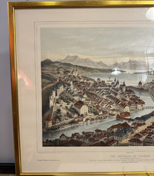 Antike kolorierte Lithographie „Vue Générale de Lucerne“ – Eglin Frères um 1860