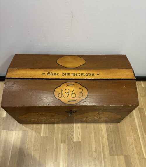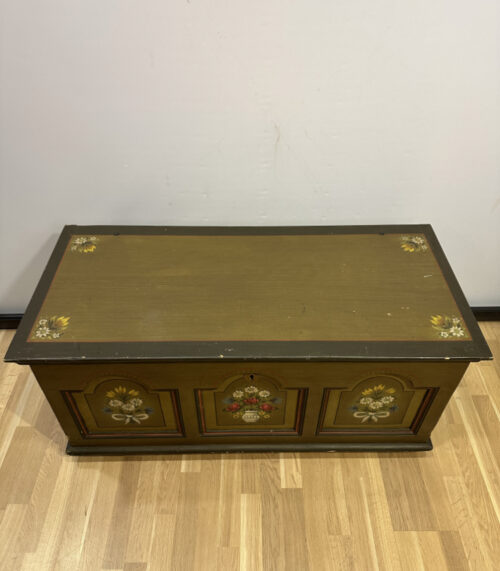 Traditionelle Holztruhe mit Blumenmalerei 1963