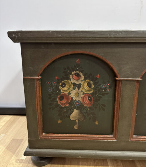 Antike Holztruhe mit floralen Bauernmalerei