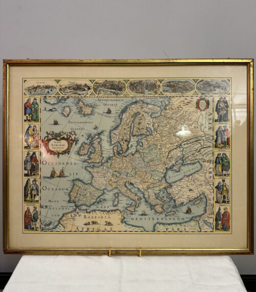 Historische Europakarte „Nova Europae Descriptio 1637“ im Goldrahmen