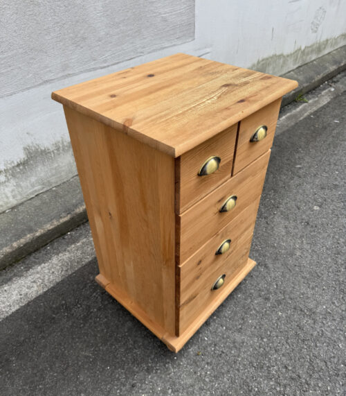 Kieferholz Kommode mit 5 Schubladen und Messinggriffen