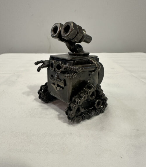 Handgefertigte Metallfigur inspiriert von «Wall-E» aus Schrauben und Ketten, Upcycling Kunst