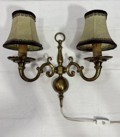 Vintage Messing Wandleuchte mit 2 Stoffschirmen