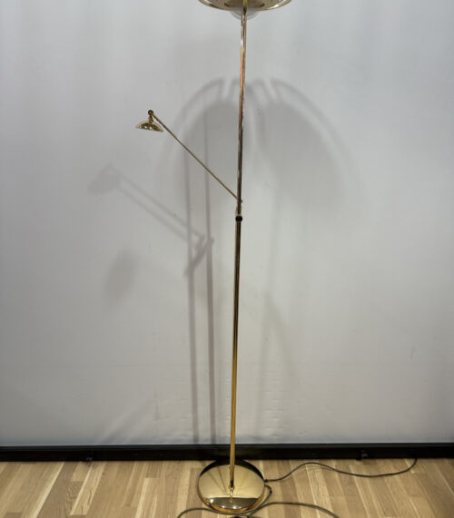 Vintage Stehleuchte in Goldoptik mit Deckenfluter, flexiblem Lesearm und Fussschalter