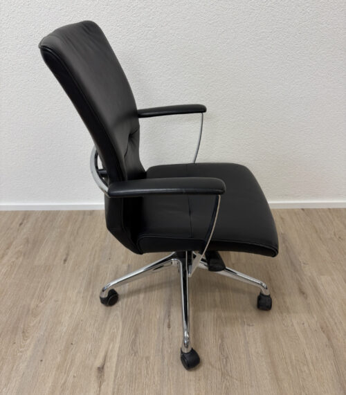 ZUCO Bürodrehstuhl aus schwarzem Leder mit Chromgestell