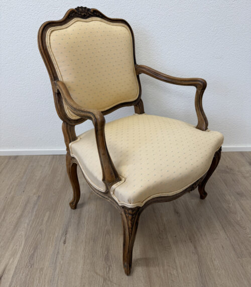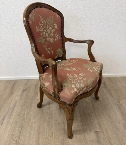 Antike Louis XV Fauteuil, Armlehnenstuhl aus Nussbaumholz mit Federpolsterung