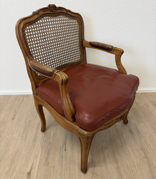 Antik Louis XV Cabriolet Sessel mit Wiener Geflecht und Leder, 18. Jahrhundert