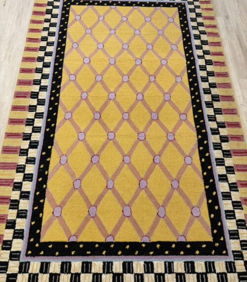 Vintage Design-Teppich in Gelb, Schwarz und Rosé mit grafischem Muster, 240 x 150 cm