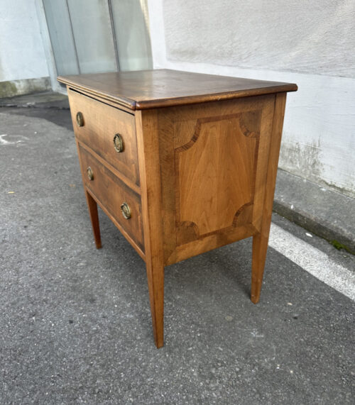 Antike Biedermeier Kommode mit Intarsien und Messingbeschlägen