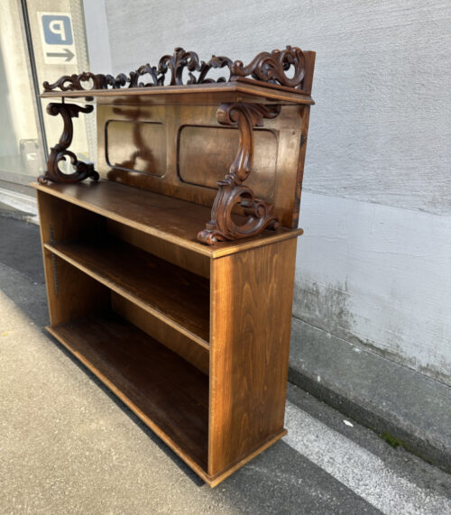 Regal mit antikem Aufsatz und geschnitzten Ornamenten