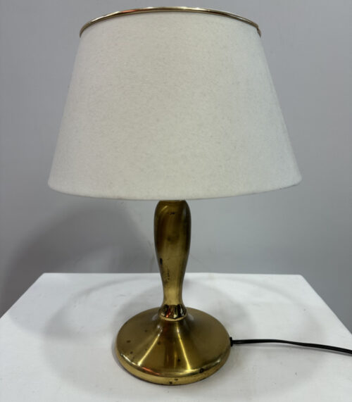 Vintage Tischlampe mit Messingfuss und weissem Stoffschirm, Mid-Century-Design