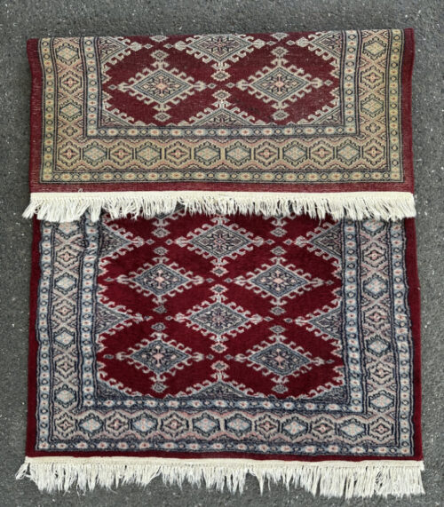 Orientteppich rot mit Rautenmuster, handgeknüpft 135 x 79 cm