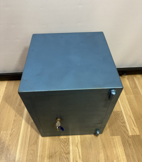 Blauer Stahltresor mit Schlüssel und Zwischenboden