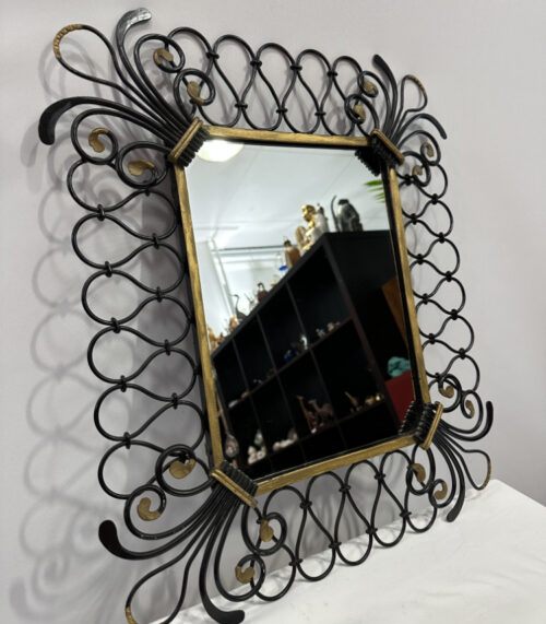Rechteckiger Wandspiegel mit geschwungenem Schmiedeeisen Rahmen