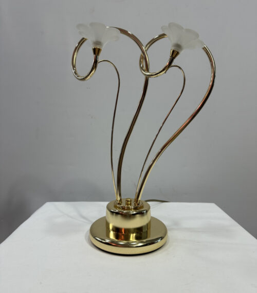 Florale Tischlampe mit goldglänzendem Sockel und Glasblüten