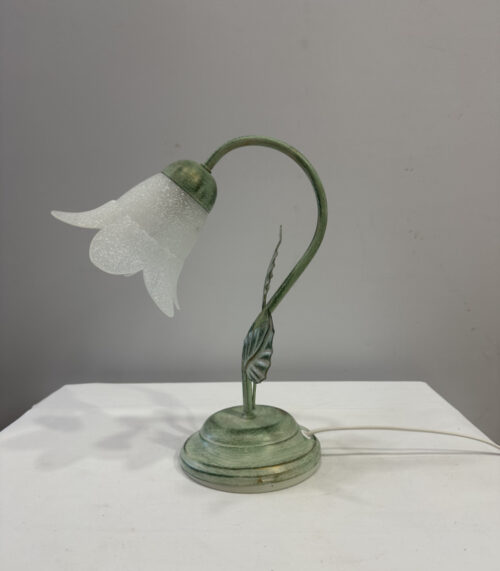 Tischleuchte mit floralem Design und satiniertem Tulpen-Schirm