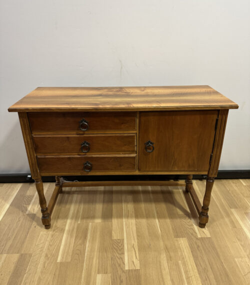 Vintage Beistellmöbel aus Holz mit drei Schubladen und Türfach