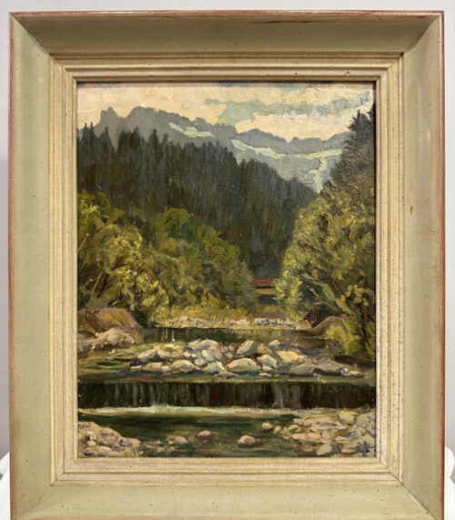 Ölgemälde von K. Hummel – «Am Ruggbach» mit leicht grünem Holzrahmen 44 x 52 cm