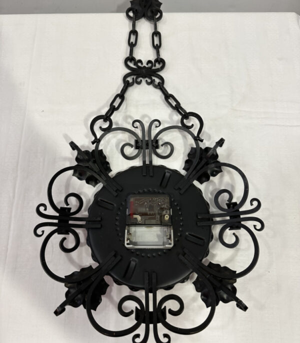 Vintage Wanduhr von Claudius mit Schmiedeeisenrahmen und Kupfer Ziffernblatt