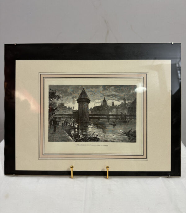 Historischer Stahlstich Kapellbrücke und Wasserturm Luzern 40 x 30 cm