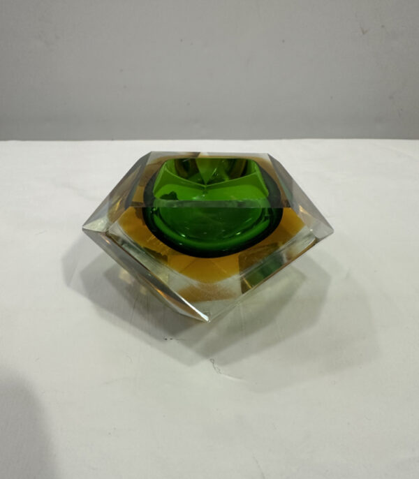 Murano Glas Aschenbecher in Smaragdgrün und Bernsteinton um 1960