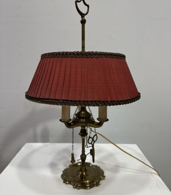 Vintage Florentiner Tischlampe aus Messing mit rotem Faltenstoffschirm