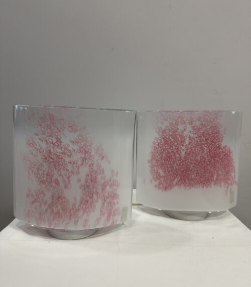 2er-Set Design Tischlampen von Rosanna Toso für LECO – Modell «Idra», Muranoglas mit rosa Murrine-Dekor
